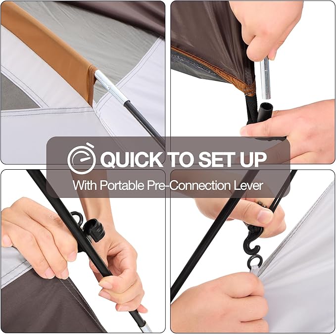 - ๐Waterproof fabric: The camping tent uses 15*19 density PU2000 150D Oxford cloth, which is not only wear-resistant and tear-resistant, smooth to the touch and not easy to wrinkle, but also combined with 2000mm PU waterproof coating, which can withstand heavy rain and is also suitable for bad weather.