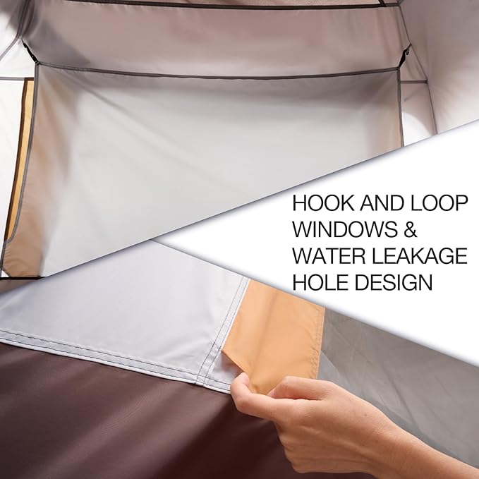 - ๐Waterproof fabric: The camping tent uses 15*19 density PU2000 150D Oxford cloth, which is not only wear-resistant and tear-resistant, smooth to the touch and not easy to wrinkle, but also combined with 2000mm PU waterproof coating, which can withstand heavy rain and is also suitable for bad weather.