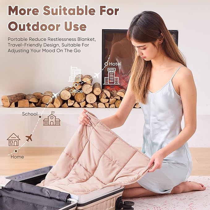 - TARGETED DESIGN: Small size blanket is designed for the knees, waist, shoulders and other local parts of the body. Compared with the large weighted blanket, this weighted lap blanket is lighter and more flexible, and will not affect the use due to its size. The lightweight blanket makes it convenient for you to carry it with you. It is very suitable for flying, office rest, traveling or camping. No matter where you are, you can enjoy the most relaxing sleep and rest.