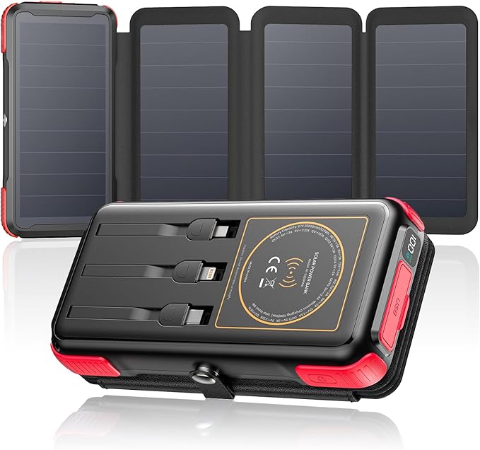 - Special Feature : Built In 3 Cables, 4 Solar Panels, LED Camping Flashlights, Waterproof, Shockproof, Dustproof, Wireless Charging Built In 3 Cables, 4 Solar Panels, LED Camping Flashlights, Waterproof, Shockproof, Dustproof, Wireless Charging
