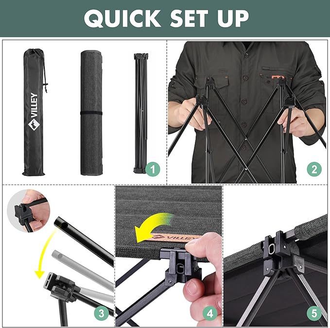 - Strong Yet Lightweight – Premium aluminum alloy frame supports up to 55 lbs while keeping the table ultra-light (2.75 lbs). Easy to carry and ideal for minimalist campers