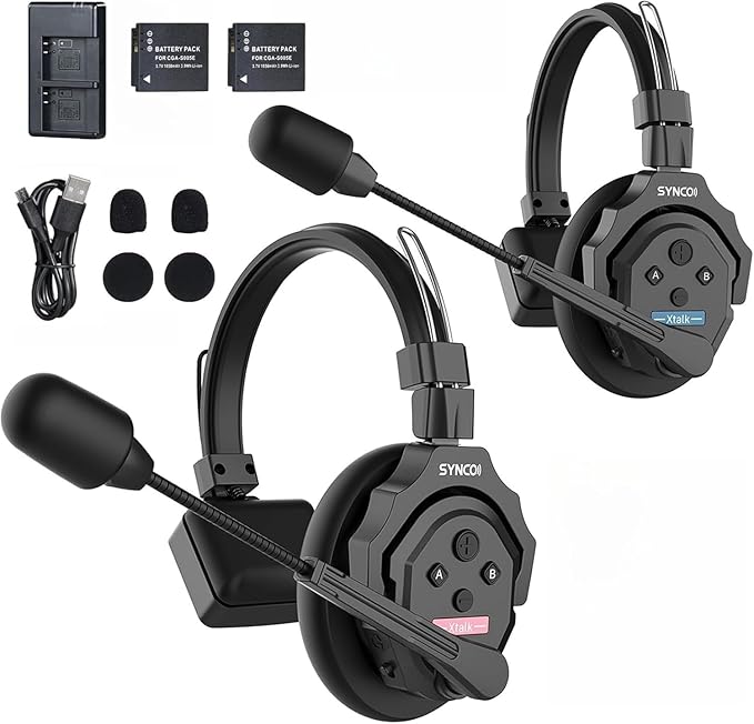 SYNCO XTALK X2 Wireless Headset Intercom System 2.4GHz 400 Meters Noise Cancellation Communication Headset for 2 Persons Live Streaming Movie Shoot Team Communication