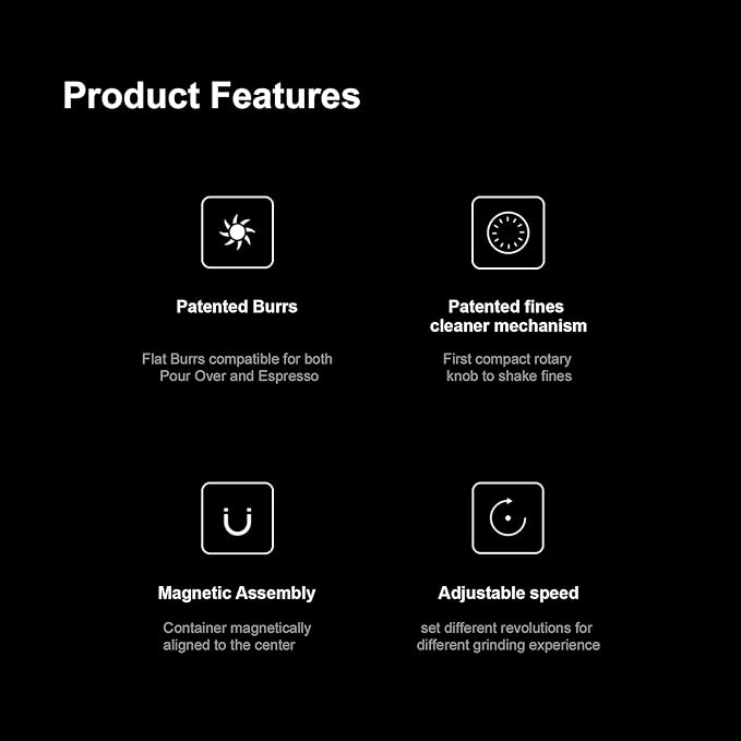 - [ Sensory Brushless Motor ] Our Burr Coffee Grinder uses a zero-friction motor with PID control and Hall elements for smoother operation, longer lifespan, and greater stability. Unlike traditional brushed motors, it doesn’t shake during use, providing a more precise grind every time.