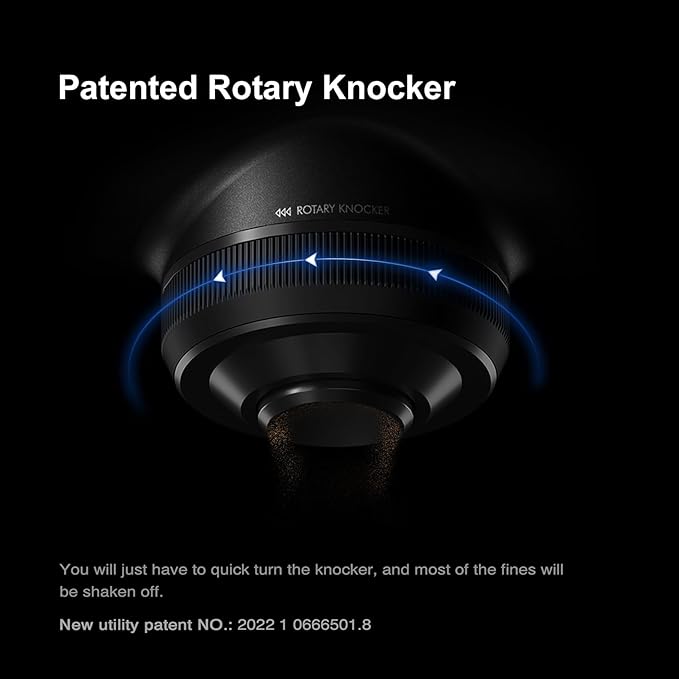 - [ Patented Rotary Knocker ] Ordinary coffee grinder lt's usually difficult to clean fines thoroughly from the grinderspout. Sculptor 064S coffee grinder designed this rotary knocker to have fines cleanedeffectively, You will just have to quick turn the knocker, andmost of the fines will be shaken off.