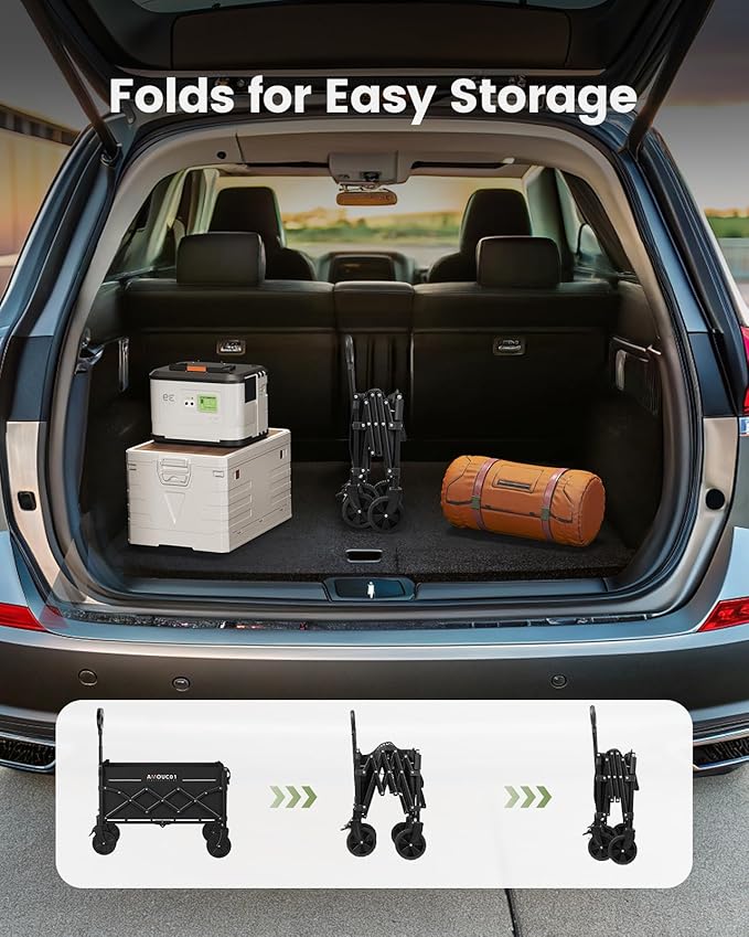 - All-in-One Carry Solution: The 90L collapsible small wagon cart adapts to various uses, from grocery shopping and outdoor picnics to gardening and moving supplies. Strong, spacious, and built for convenience—this folding wagon cart is the ultimate companion for any hauling task.