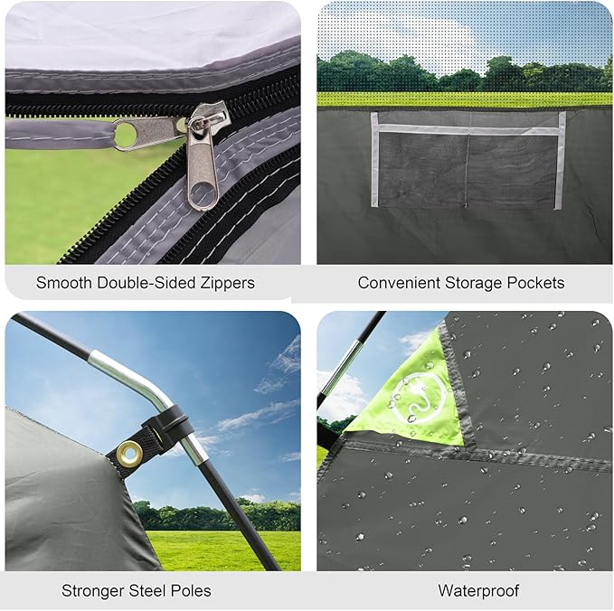 - Quick Setup: Includes upgraded dual-way zippers, internal storage pockets to keep your tents dry and organized. Setup takes just 5 minutes with two people—great for both new and experienced campers