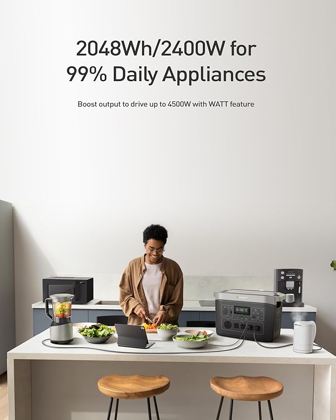 GROWATT Portable Power Station with 200W Solar Panel,Black Infinity 2000 Electric Solar Generator,2048Wh LifePO4 Battery, 2200W AC Output for Home Use, Outdoor Camping, RVs and Emergency Backup