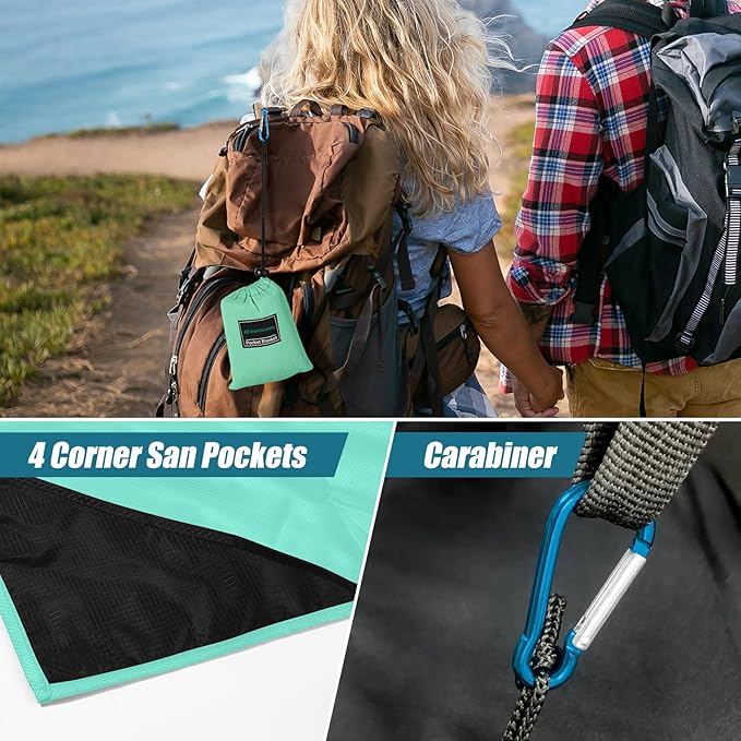- 【Durable and Waterproof】: Made of nano-grade nylon cloth with the surface is coated with a heat resistant coating, the membrane surface can be used to isolate water droplets. The tight textile structure guarantees the isolation of all fine sand and water. keeping the top surface comfortable and dry when used on damp grass or beach.