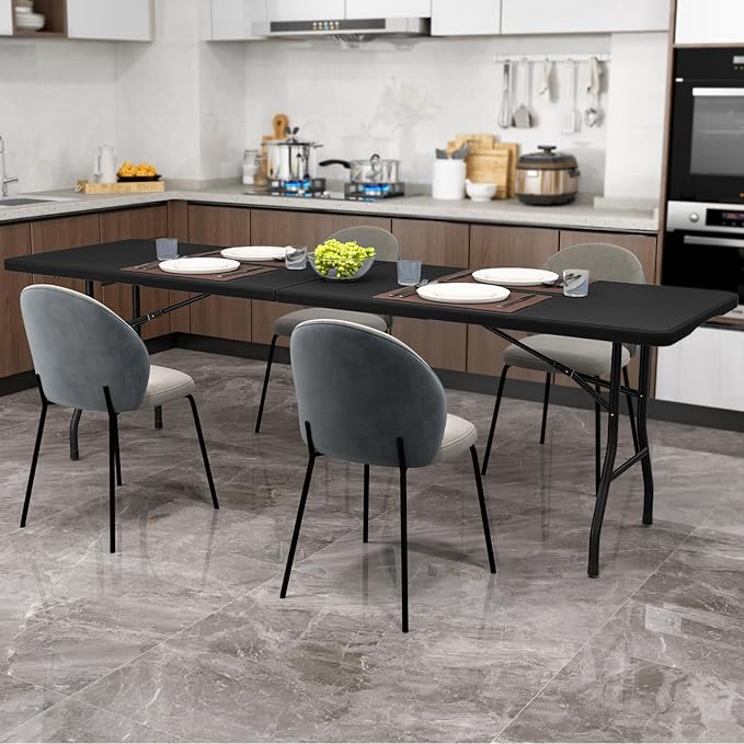 - Secure Folding & Expanding: Equipped with a safety lock and joint locks, the table folds in half with high security for easy storage and transport. This portable folding table with 36.5 lbs net weight will provide much convenience for you.