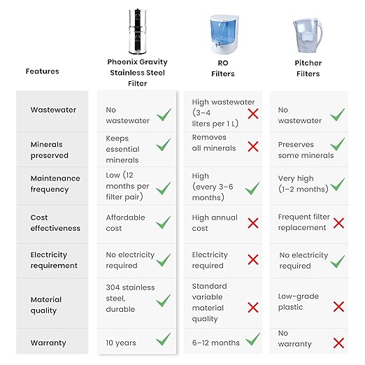 - ๐๐๐ -๐๐๐ซ๐ญ๐ข๐๐ข๐๐ ๐๐๐๐๐ญ๐ฒ โ Our Phoenix Gravity Water Filter is built with NSF/ANSI Standard 42 and 372 certified food โ grade materials. It meets high safety and quality standards, making it a trusted water filtration system for house use or survival situations.