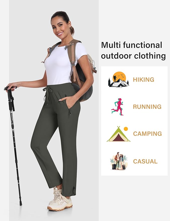 - Lightweight & Breathable Quality Fabric: Our women's hiking pants are made of lightweight, quick-dry, stretchy fabric with good breathability and water resistant performance, which is the best helper for you when you are outdoor activities.