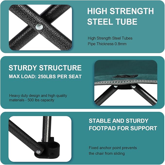 - ✅ HEAVY DUTY CAMPING CHAIR SET DURABLE AND RELIABLE - The LANMOUNTAIN camping chair set is made of thick steel, the double chair has a weight capacity of 600lbs and each single chair has a weight capacity of 250lb, ensuring it can support heavier weights. Its non-slip foot bottom and adaptable design provide stable support on any surface.