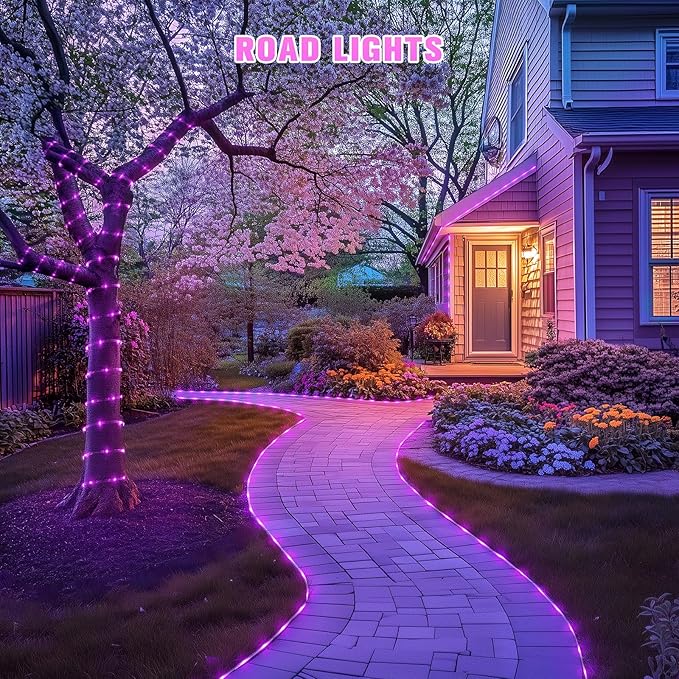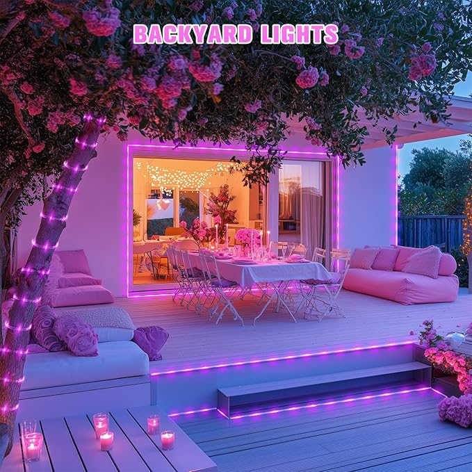 - [Outdoor Fairy Christmas String Lights] This led rope light outdoor is IP65 waterproof, you can use it in sunny/windy/rainy/snow/fog and so on. It is a great choice for indoor and outdoor decorations for special events such as Christmas, parties, Easter, Halloween, Mother‘s Day, Thanksgiving, weddings, birthdays, etc.