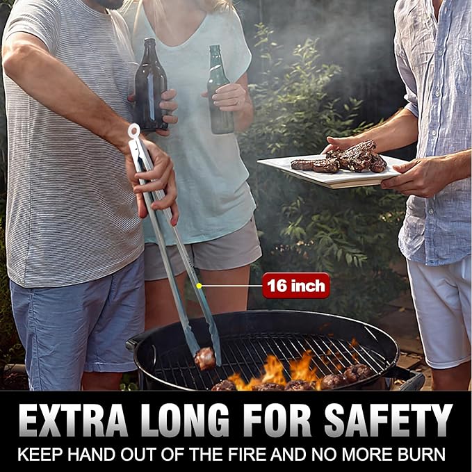- Extra Long Tongs - 16 inch and 12 inch BBQ Grilling Tongs Protect your hands from the heat. Perfect for bbq, cooking, grilling, buffet serving, barbecue and camping etc.