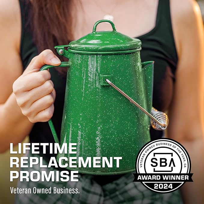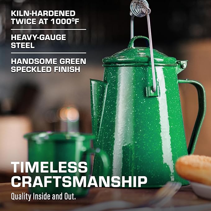 - TIMELESS CRAFTSMANSHIP—Built for the Wild, Crafted for a Lifetime – The COLETTI camping coffee pot is built to outlast the journey. Forged from reinforced steel and coated with imported German enamel, this camp kettle embodies classic outdoor cookware. Whether brewing cowboy coffee over open flames or boiling water on a stovetop, it delivers hot, pure, and steady coffee—because every great adventure starts with great coffee.