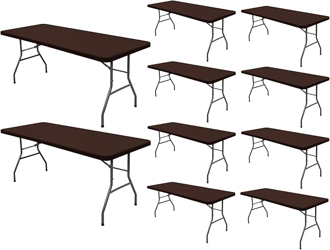 10 Pack Picnic Table Cover Fitted 6 Foot Tablecloth for Rectangle Table Elastic Waterproof Stretch Washable Patio Folding Outdoor Spandex Tablecloth for Camping Banquet and Parties (Coffee 30" x 72")