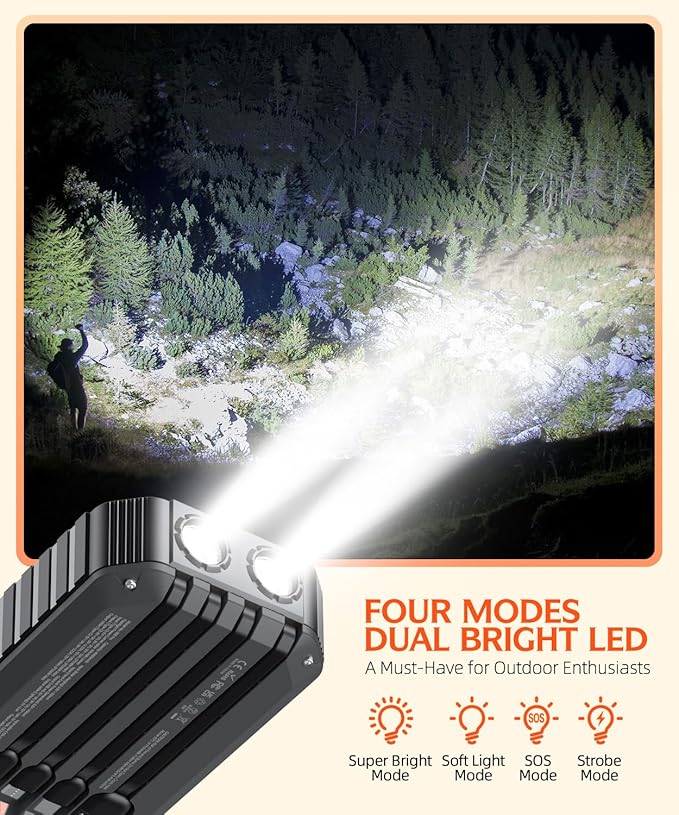 - Solar power bank built-in super bright flashlight has 4 light modes (Super Bright / Soft / SOS / Strobe), which can be used as a camping light, emergency light and rescue signal light. In addition, this rechargeable power bank also has a built-in compass, leveling device and solar panel, so it can be hung on your backpack and recharged by the sunlight to get a certain amount of power. Great for outdoor activities such as camping, hiking and other emergencies.