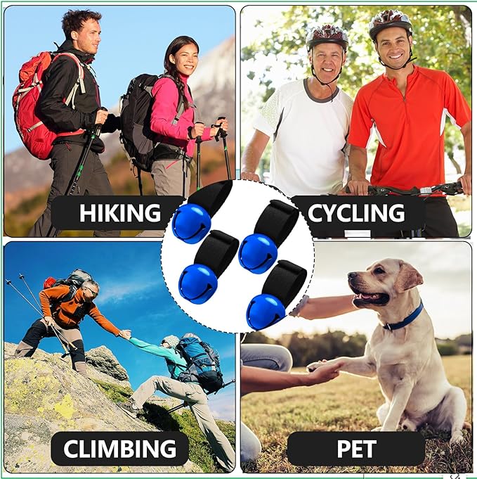 4 Sets Bear Bells with Whistle for Hiker, Loud Bear Bell with Emergency Whistle, Bear Bells for Hiking, Outdoor Camping, Survival, Biking, Fishing, Climbing, Hunting, Pet Tracker