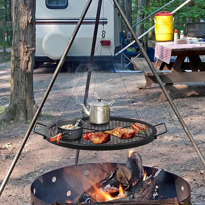 - 【Easy to Use】One piece design, you don't need to open it. Just hold the handle, put it over fire pit, sit around and enjoy your grilling time. With the handle, it is also easy to move the grate over a bit to add some coals or wood.
