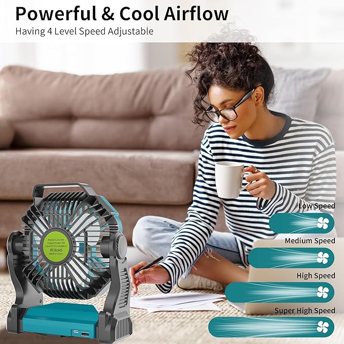 - ๐๐ผ๐ ๐ก๐ผ๐ถ๐๐ฒ & ๐ฃ๐ผ๐๐ฒ๐ฟ๐ณ๐๐น ๐ช๐ถ๐ป๐ฑ - This battery fan for camping features a professional brushless motor and high-performance ultra-thin fan blades for excellent airflow and efficient operation. This camping essentials noise level is only 30 dB. The travel tent fan will keep the air circulating , and provide you work, rest and read environment experience.
