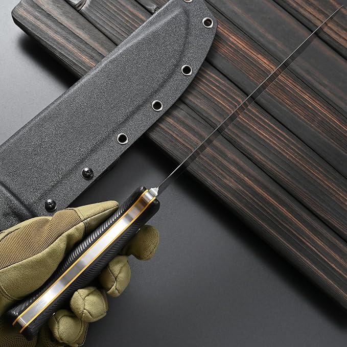 - SUPERIOR BLADE STEEL:6mm Thick Spine Sleipner Steel Blade: Razor sharp Blade with thick strong drop point , made of Swedish Tool Sleipner Steel,hardness 60-62HRC,high performance as DC53 steel especially in corrosion resistence,sturdy build beefy blade is powerful, premium steel can hold an edge very well, also easy to grind. with grossive jimping on the spine and a nice finger choil for effortless Safety cutting and Chopping works.
