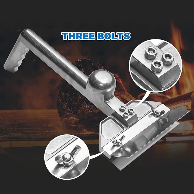 - Egronomic long handle design - The handle of the grill top scraper provides more leverage with an ergonomic hand hold, and a knob grip for the opposite hand for more control and pressure,and prevent hands and fingers from burns