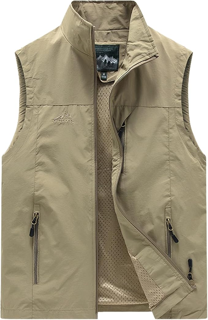 • Fabric: men's outerwear vests featuring premium polyester mesh fabric and nylon blending, breathable and comfortable, Anti-pilling and not easy to shrink, waterproof and quick drying,easily care and durable.