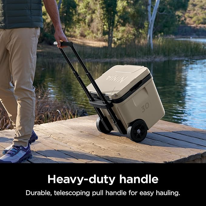 Ninja | Cooler | FrostVault 30QT Cooler with Wheels | Insulated with Temp Dry Storage Drawer | Keeps Ice Cold for Days | for The Beach, Camping, Picnics & More | Birch Beige | FB230CS