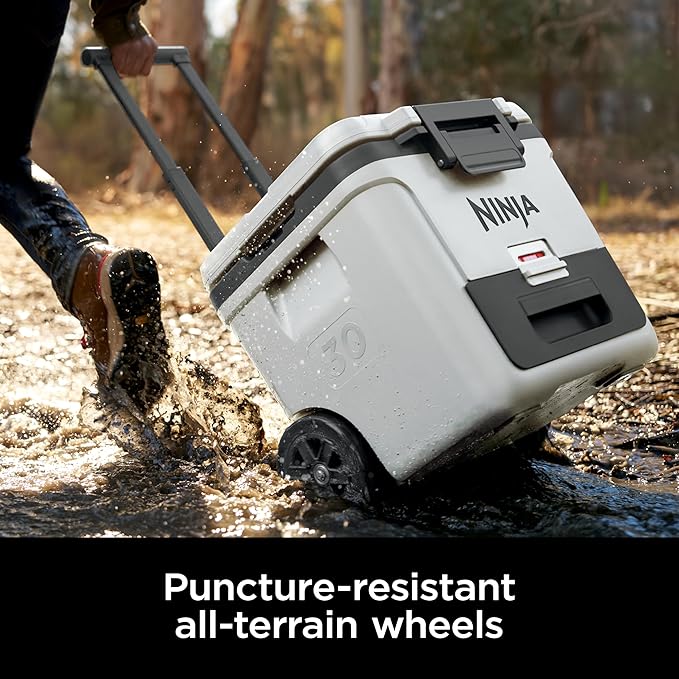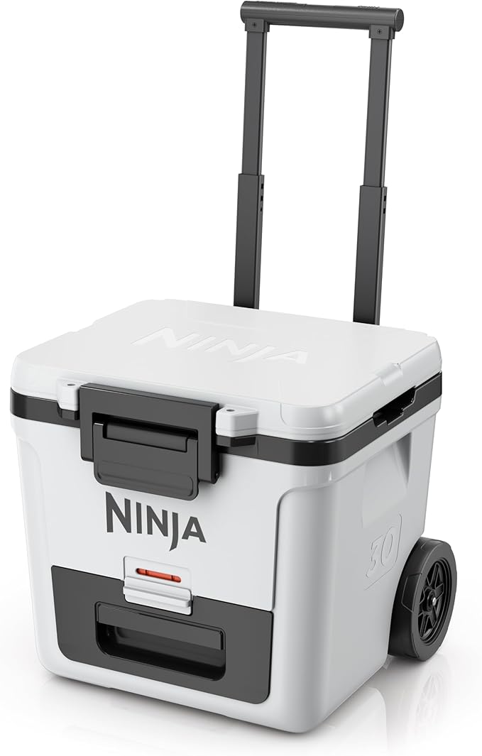 Ninja | Cooler | FrostVault 30QT Cooler with Wheels | Insulated with Temp Dry Storage Drawer | Keeps Ice Cold for Days | for The Beach, Camping, Picnics & More | Cloud White | FB230WH