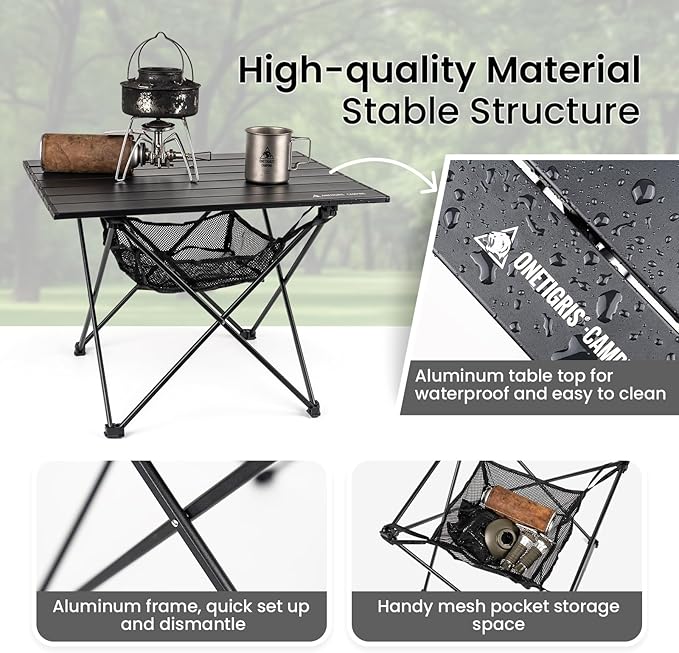 OneTigris Portable Camping Table, Lightweight Beach Table with Storage Net & Carry Bag, Camping Side Table for Outdoor Cooking, Hiking, Fishing, Picnic, Travel