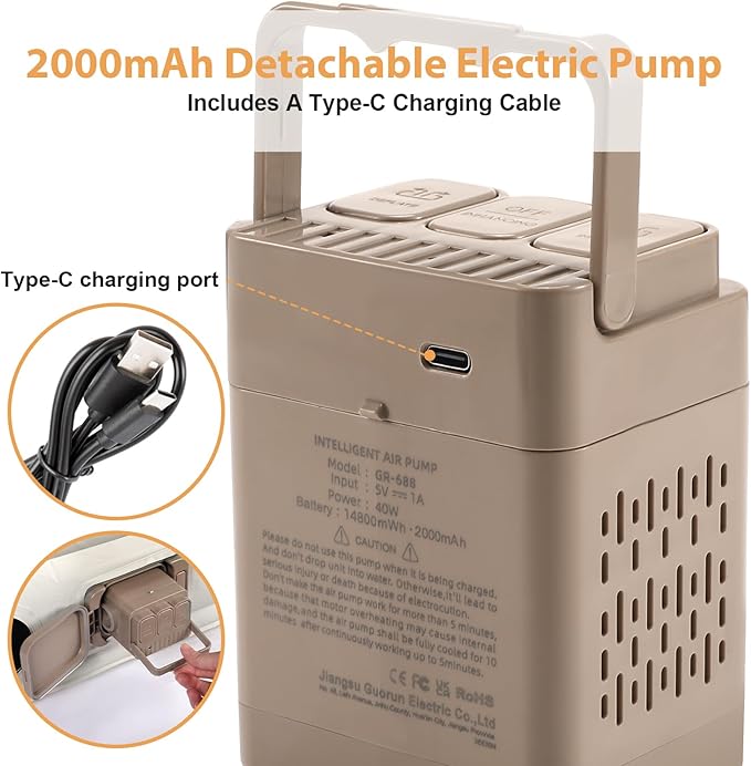- 【SELF-INFLATING WITH BUILT-IN PUMP】- Say goodbye to manual pumping! The built-in pump allows for one-touch inflation, fully inflating the mattress in just 90 seconds. Whether you're camping, on a road trip, or hosting guests, this quick and easy setup saves time and effort. Deflation is just as simple—press the button, and it’s ready to store