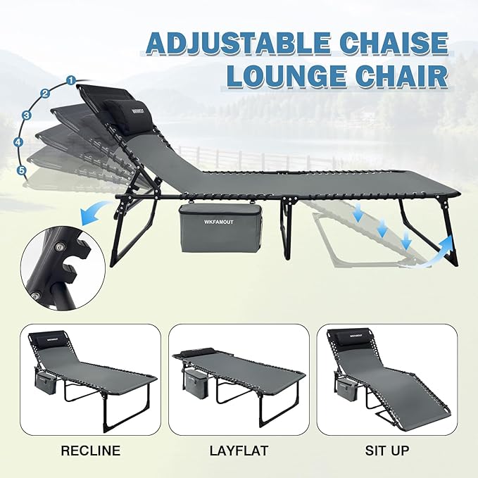 - Outdoor lounge chair: WKFAMOUT adjustable lounge chairs are rich in color and pay more attention to quality (made of durable alloy steel and 600D*600D oxford). Additionally, we offer a 365-DAY GUARANTEE. If you have any issues or concerns, our dedicated customer service team is here to help you. We are committed to ensuring your satisfaction with our chaise.
