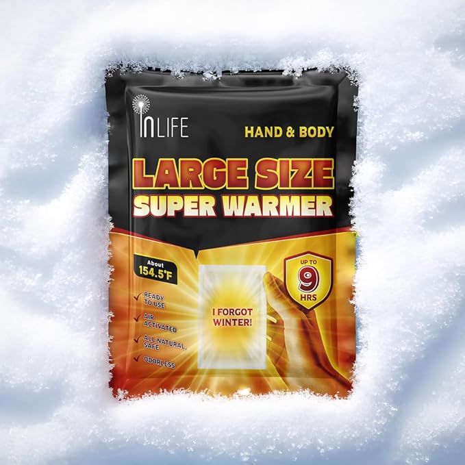 InLife Large Size Super Warmer for Hands and Body, All Natural & Safe, Bigger & Wider Area Covered, Higher Heating 145°F, Air Activated, Easy & Comfort, Steady Longer Lasting, Odorless, 40 Packs
