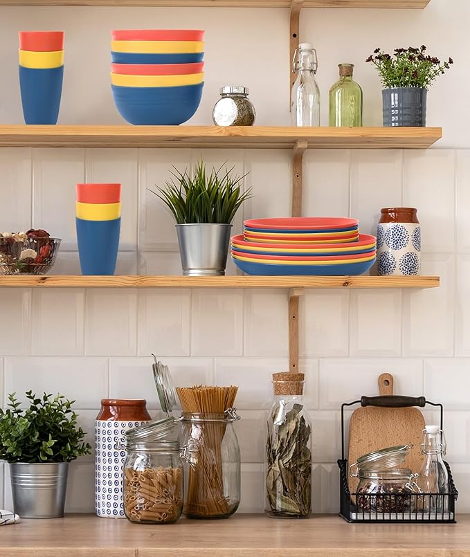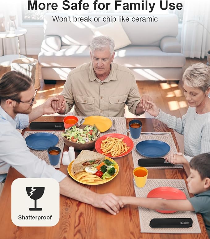 - Durable and Kid-Friendly: Nearly unbreakable, shatterproof plastic dinnerware set with raised edges, resistant to chipping, scratches, and wear-related damage. Ideal for camping, RVs, beach houses, and safe for toddlers and children