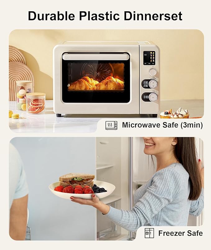 - Dishwasher and Microwave Safe: These plates and bowls sets can also go in the fridge or freezer. Offer convenient cleanup and reheating, making them ideal for everyday use