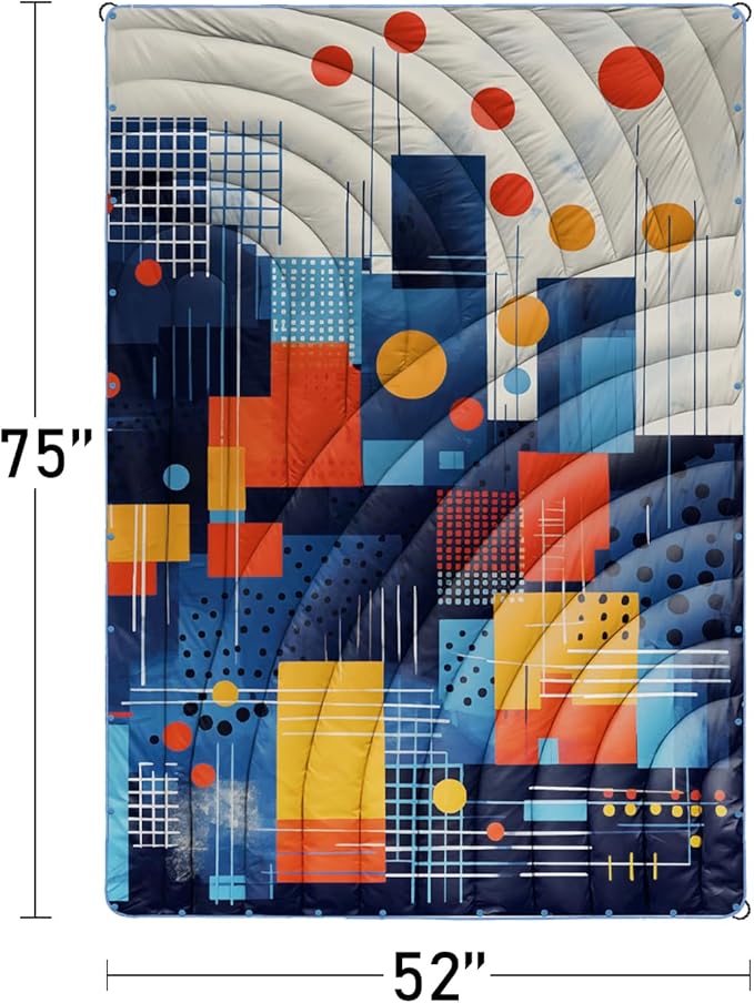 Camping Blanket,Puffy Printed Camp Blankets Lightweight Packable for Outdoor Camping,Traveling, Stadium, Hiking, Picnics