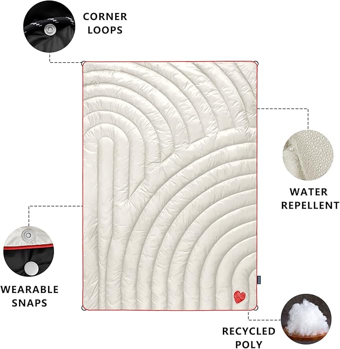 - MULTIFUNCTIONAL BLANKET: This blanket has multiple pairs of buttons and can be used as a comforter, rug, shawl, or sleeping bag. You can also put two blankets together to make a double sleeping bag.Perfect for camping, backpacking, hiking, climbing, travel, relaxation, picnics, beach trips, sports activities, airplane trips, and other outdoor activities.