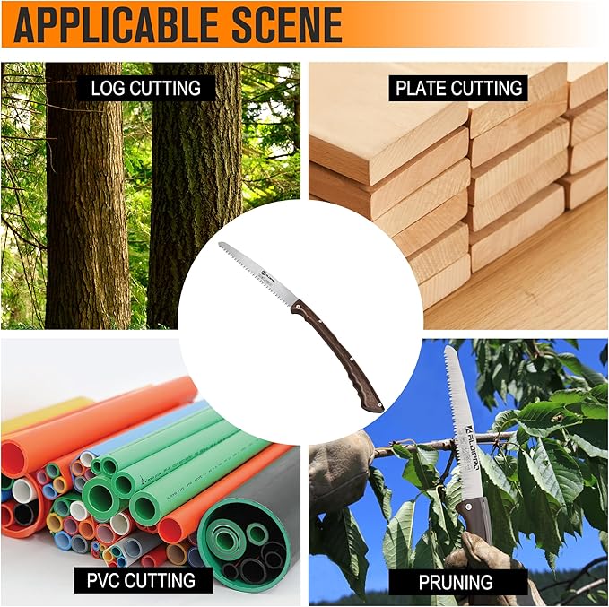 - ✅【10 Inch Heavy Duty Pruning Saw】Fit for heavy work,with excellent cutting power, This 10 inch folding hand saw can easily cope with branches with 6 inches in diameter. It is an efficient hand saw for outdoor operations and is suitable for various complex environments