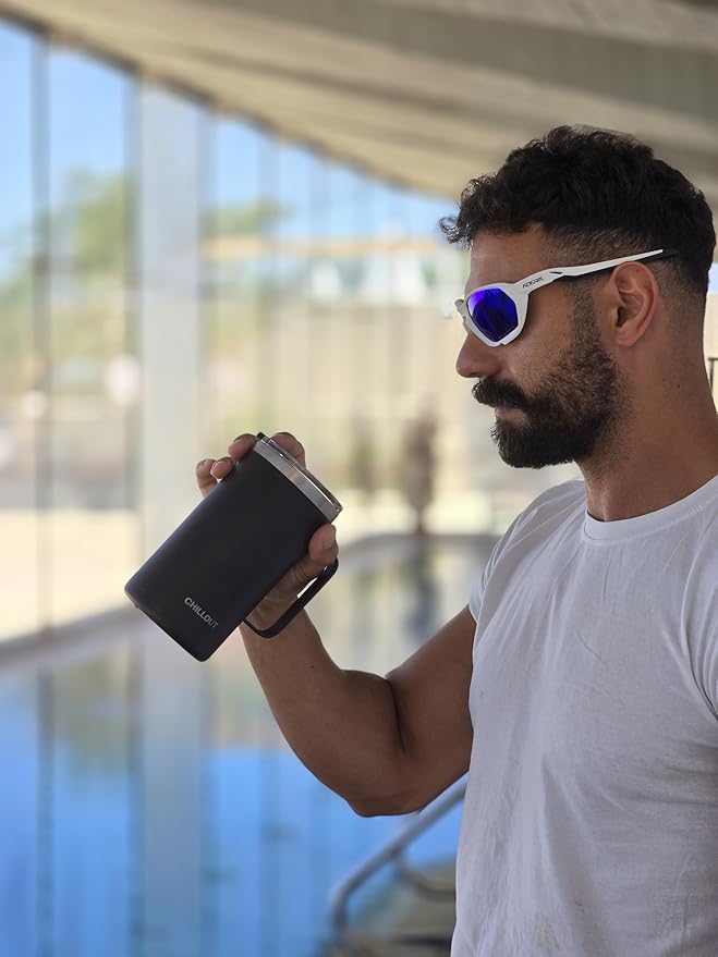 - Always With You - The CHILLOUT LIFE thermal coffee mug with handle is made of premium 18/8 food grade stainless steel for a 100% durable unbreakable coffee mug. Electro-polished on the inside, the cups stay 100% rust free. The outside of each mug is treated with a powder coating finish preventing scratching, peeling or fading. It also has a great feel & looks incredibly chic. Easy clean - it’s wonderfully convenient to use at home or on the go instead of ceramic or enamel mugs.