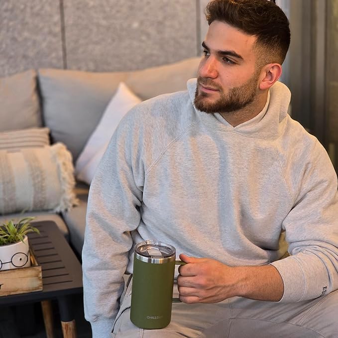 CHILLOUT LIFE Stainless Steel 20 oz Vacuum Insulated Coffee Mug with Handle and Lid, Large Thermal Camping Coffee Mug Cup with Durable Sliding Lid for Men & Women, Keeps your Beverages Hot/Cold