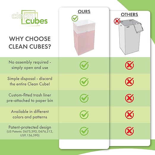 - ✅【VALUE 3-PACK】Includes 3 Clean Cubes per package — each bin comes with 3 custom-fitted trash liners. 30-gallon capacity (17” x 14” x 30”).