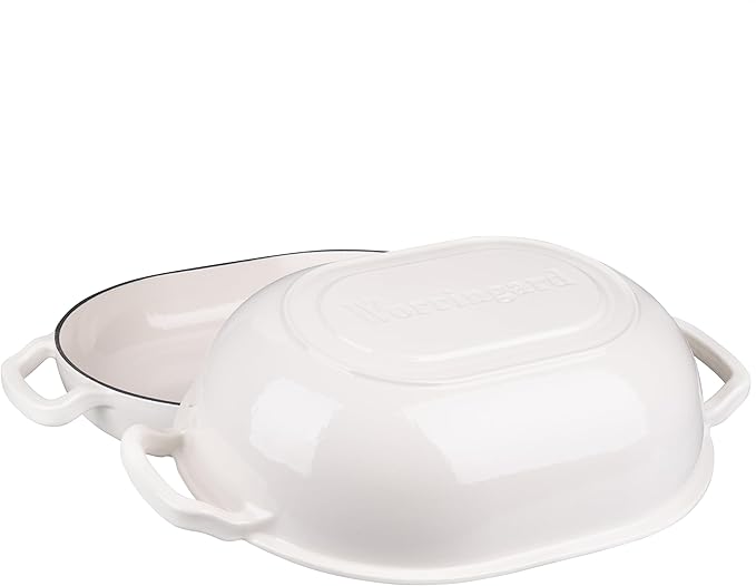 Enameled Cast Iron Sourdough Bread Oven, Dutch Oven, Loaf Cast Iron Bread Pan for Homemade Bread Baking, Meatloaf Pan with Lid, 7QT, White