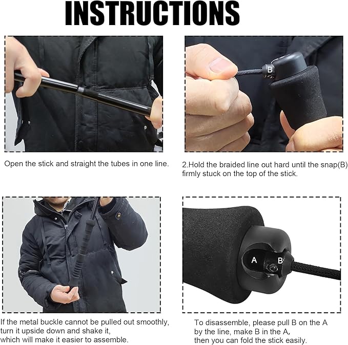 - Quick Deployment & Compact Folding | The 4-section retractable staff unfolds in seconds with a secure locking mechanism, extending to 155 inches (140 cm) and collapsing into a compact, portable size. Whether it's for survival situations or everyday fishing, this three-section staff is designed for convenient and reliable use.