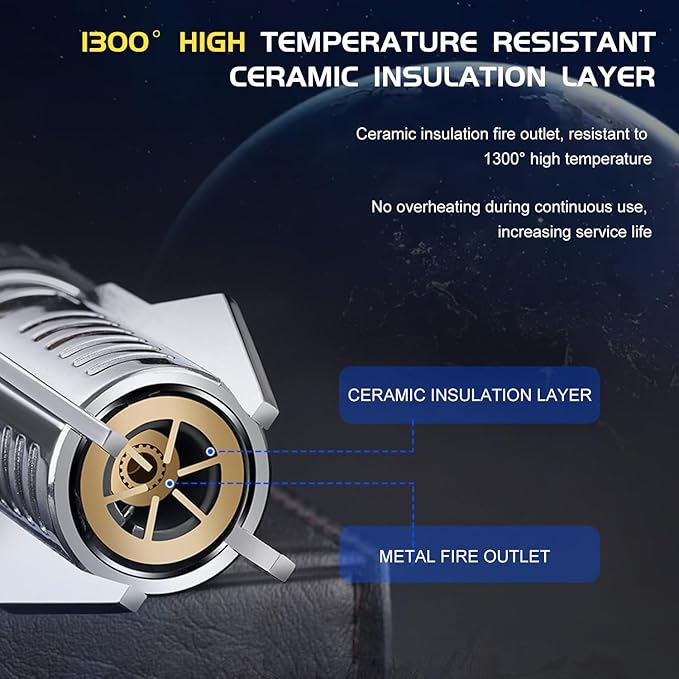 - 【Excellent Material】This windproof lighter is made of metal and 1300° high temperature resistant ceramic insulation layer, which has a comfortable grip. The ceramic insulation layer and metal fire outlet can prevent overheating during continuous use, increasing the service life