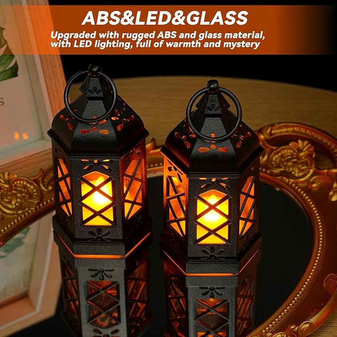 - New Design: Candle lantern decorative indoor with the new hexagonal base design, upgraded ABS black shell and grille glass, make the quality more stable and the lighting more attractive, the construction is durable enough for frequent use. Battery powered lantern for Christmas, Easter, Halloween, Hanukkah, New Year, Thanksgiving, Valentine's Day home decoration.