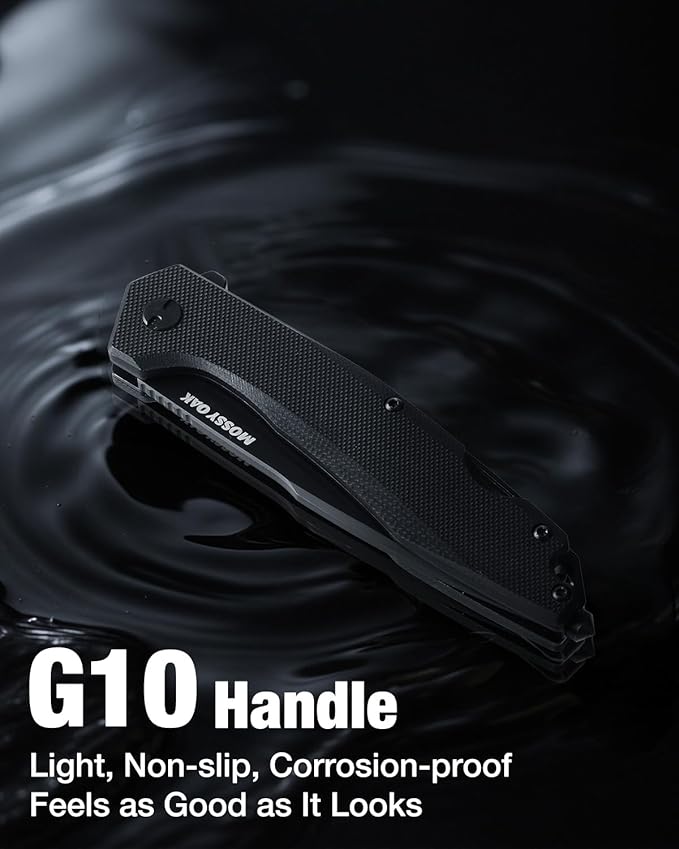 - Comfortable & Long-Lasting G10 Handle: Crafted from premium G10 material, the pocket knife's handle offers a great balance of durability and comfort. Its textured surface offers a secure, non-slip grip—even in wet or sweaty conditions—while being moisture-proof and resistant to wear and fading, making it ideal for all-weather use. Designed with both function and aesthetics in mind, this handle feels as good as it looks
