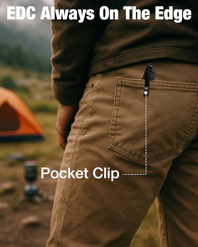 - More Than Just a Knife: Beyond outstanding cutting performance, this small pocket knife features a tungsten steel glass breaker—engineered to easily shatter windows in emergencies. It also comes with Phillips and slotted screwdriver bits, a rope cutter, and a bottle opener, offering versatile functionality for daily carry, hiking needs, tactical use, and emergency situations