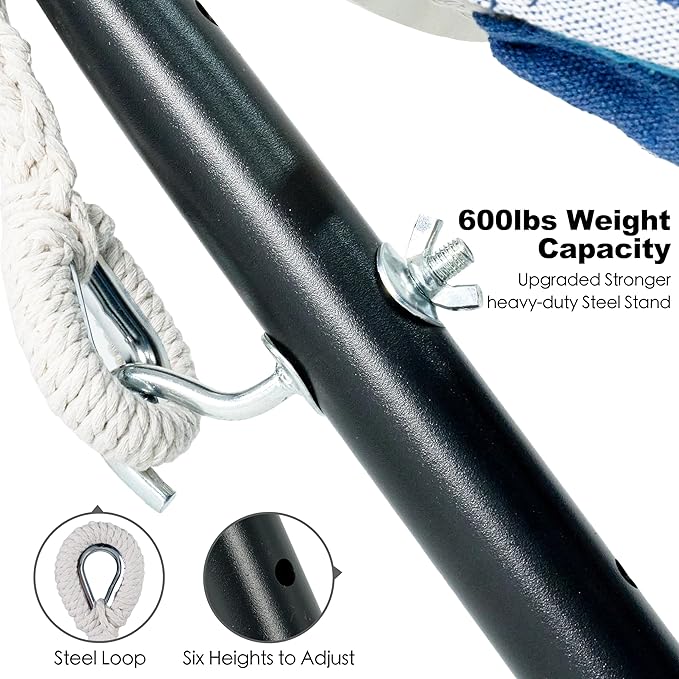 - ✅ASSEMBLES IN MINUTES: Easy to use without any tools, just align the stnad holes, tighten the knob and hang the hammock.Embrace the beauty and joy that this colorful masterpiece brings, and let it become the centerpiece of your relaxation oasis.