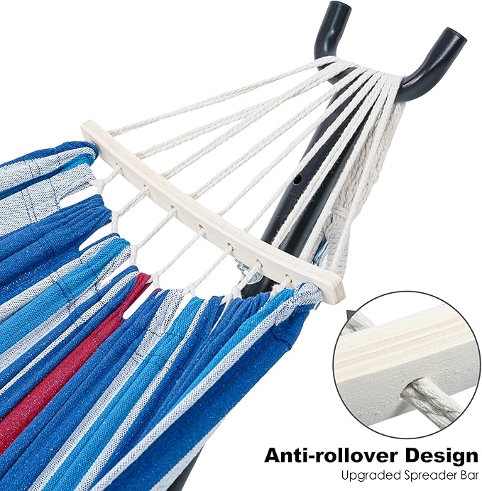 - ✅ANTI-ROLLOVER SPREADER BAR: Upgraded hammocks with anti-rollover curved spreader bars design, the 9 thicker cotton ropes are evenly distributed to make the hammock more stable, ensuring a balanced sleeping experience.