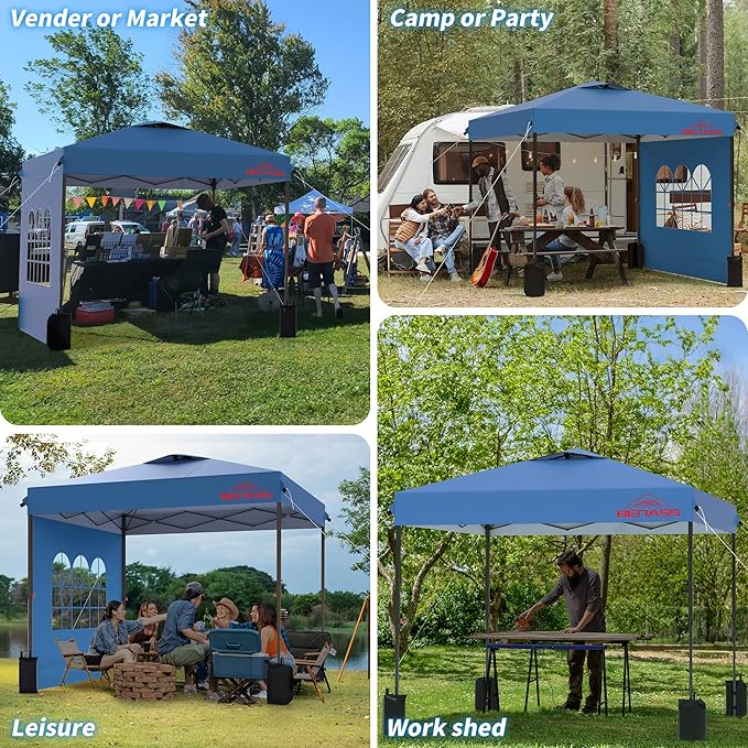 - Tilt for More Shade - You can adjust the different heights of the opposite legs so that the top of the canopy faces the sun, and you can get more shade. And then matched with 3 pieces of removable sidewalls, you can enjoy your time to the fullest